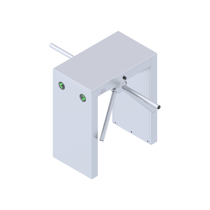Robust turnstiles for heavy traffic use with stainless steel arms. Bi-directional, logic controlled, LED indicators included on both entrance and exit sides. Hand operated; hand operated with drop arm; motor driven with drop arm options available.