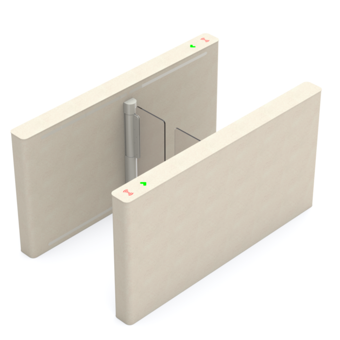 Una combinación de diseño elegante y seguridad avanzada. Puerta de velocidad abatible con motor 24V BLDC y 72 sensores ópticos de seguridad. Tiempos de apertura y cierre entre 0,4 y 1,2 segundos. Como parte del diseño interior, Vision Solid puertas de velocidad puede adaptarse a los colores corporativos o interiores y se convierte en una parte integral de su zona de entrada.
