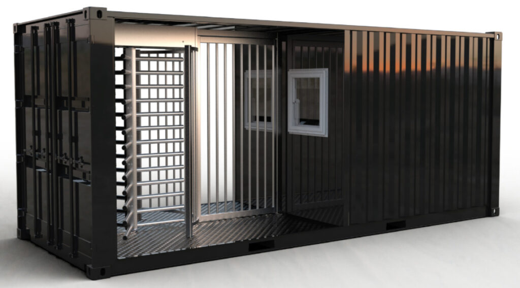 Estas soluciones transportables móviles son fáciles deimplementable y puede proporcionar puntos de entradarobustos y administrados según sea necesario. Vienenen varias tallas incorporado en contenedores de 10 ‘a40’ de alto en cubos. Se pueden desplegar uno al ladodel otro para manejar grandes multitudes.